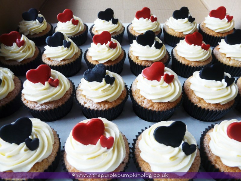 I then added the hearts in different patterns until they were all done! I think they looked lovely, my sister and brother-in-law loved them, and I was complimented on the look and taste of the cupcakes on the wedding day – very proud!