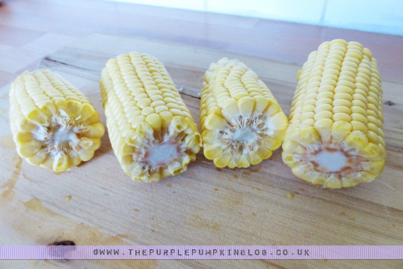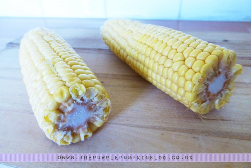 Grilling corn on the cob is one of life’s simple pleasures! To save money, I bought two corn cobs for £1 and halved them myself, instead of paying £1.79 for the same thing, but done by the factory where they are prepared!