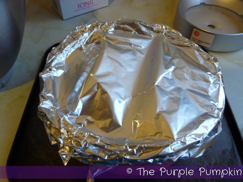 Spoon the mixture into your prepared cake tin and cover with foil to protect it during the baking process. Bake for 30 minutes with the foil on, then remove the foil from the tin and bake, uncovered for a further 20 minutes.