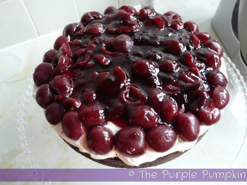 Whilst I was making the cherry filling, I popped the cream layer into the fridge to firm up a little.