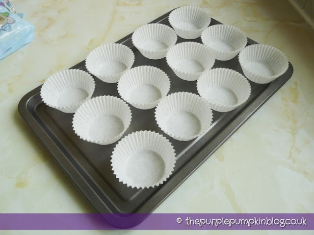 - Place 12 fairy cake cases onto a baking tray.