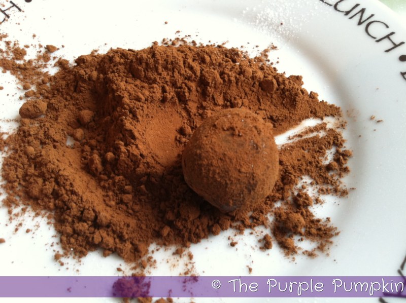 These truffles were just plain chocolate, but you could add flavourings, like a bit of rum, or some coffee, or some orange zest…