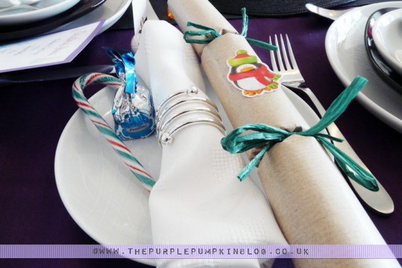 The side plate was filled with some Christmas treats – a candy cane and praline chocolate, as well as a homemade Christmas cracker each – which I shared how to make, last December.