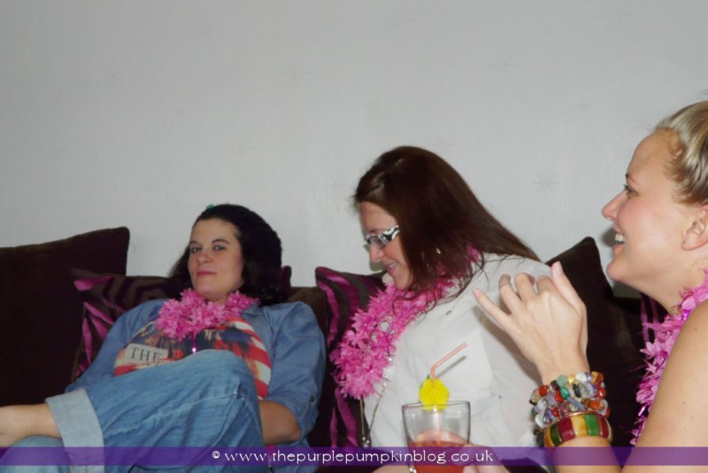 The party started mid-afternoon ish, and went on until very late evening. My best friend and sister helped me to set everything up before the other girlies showed up, and I decorated the room with some colourful streamers, paper blow up fish, and rather rude hula dolls!