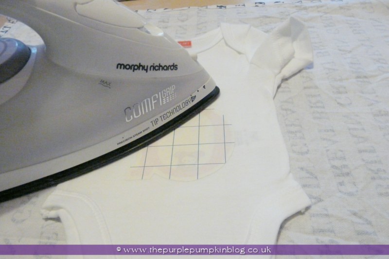 I then centred the letter on the front, and again, following the instructions to use the hottest setting on my iron and to iron on a hard surface on top of a tea-towel, I begun to iron the transfer on. I did this for about 90 seconds, and left it to cool whilst I moved onto the next vest.