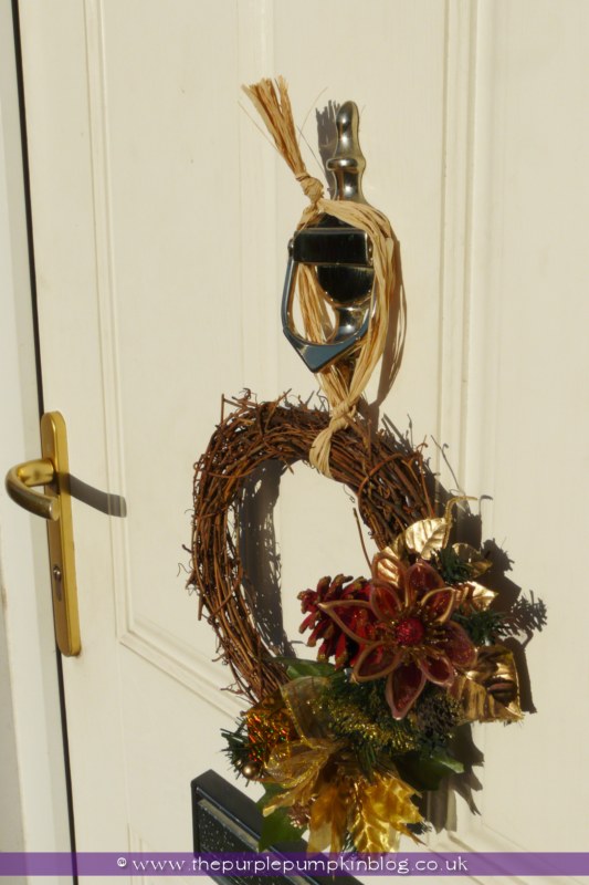 I simply tied some raffia to the top of each wreath, and then hot glued the decorations into place…job done! Didn’t take long at all, and I now have two that I can hang in the home :)