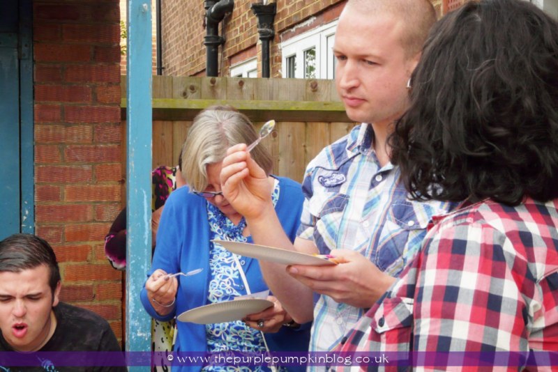 When game time came around, I removed the jar lids, and gave out some paper plates for people to scoop food onto to taste from. It was quite amusing to watch people’s reactions to the taste of the food and to hear their guessing of what each jar was!