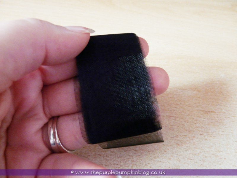 You will need about a meter of organza ribbon, about 3-4cm wide, and a thinner piece of ribbon, about 30cms long and 1cm wide. I actually cut mine down from a roll of organza that I have.
