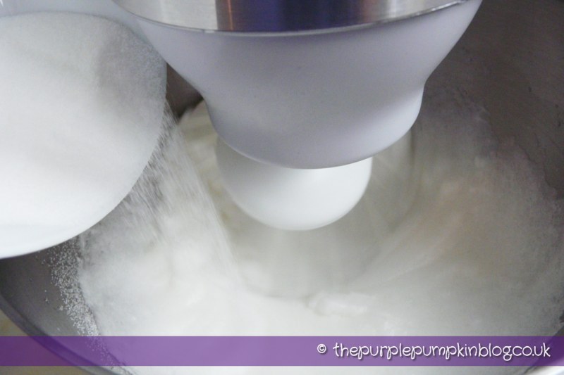 You then whisk in the caster sugar until stiff peak stage.