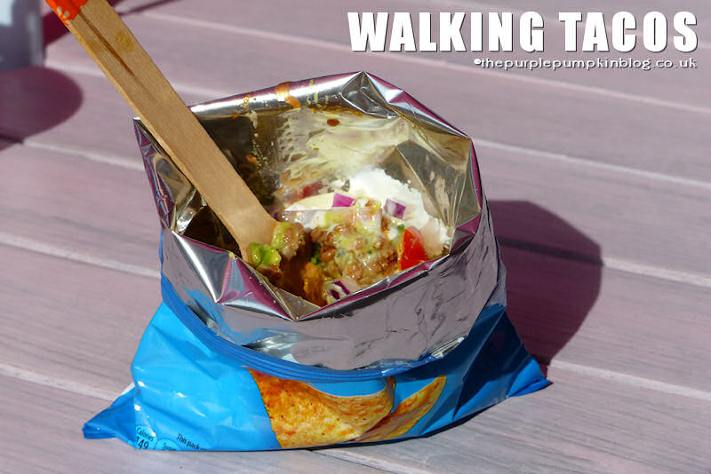In the end, I decided the easiest way to feed a lot of people was to set up a Taco Bar -its the perfect party food for guests as they can build their own tacos and wraps, plus they are easy to eat whilst watching a football match – especially walking tacos!! To make a walking taco, just crack open a bag of tortilla chips and give them a bit of a scrunch to break them up, add your favourite taco toppings and then dig in with a spoon or fork!