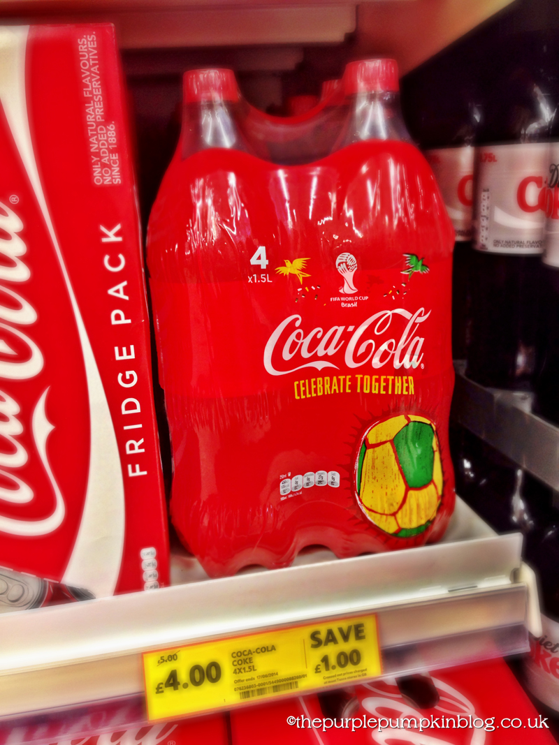 When it comes to soft drinks, there is one that always gets drunk in our house, and that is Coca-Cola – be it Regular, Diet or Zero (I heart Cherry Coke though!) Our local Tesco currently have a fab offer on Coke for the World Cup with a pack of 4 x 1.5L bottles for just £4 – bargain! I bought two packs of regular, one of diet and I had to buy up a pack of the retro glass bottles of coke, because I think they are the most gorgeous bottles ever!