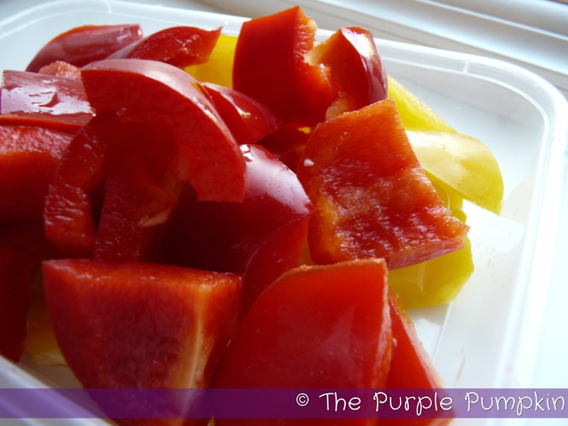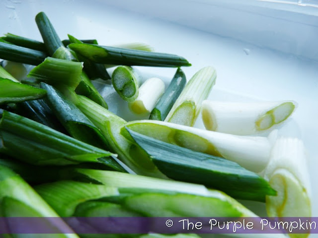 I prepared the vegetables first by cutting red pepper into chunks and slicing spring onions into 1 inch lengths.