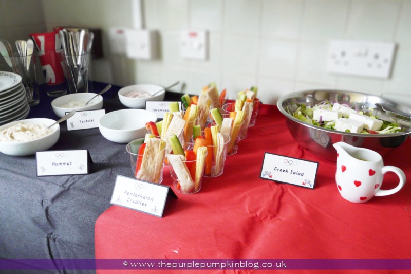 I made food labels to go with all the different dishes, and shared a freebie printable for you – having changed it so that the Olympic rings were in the right order >_<