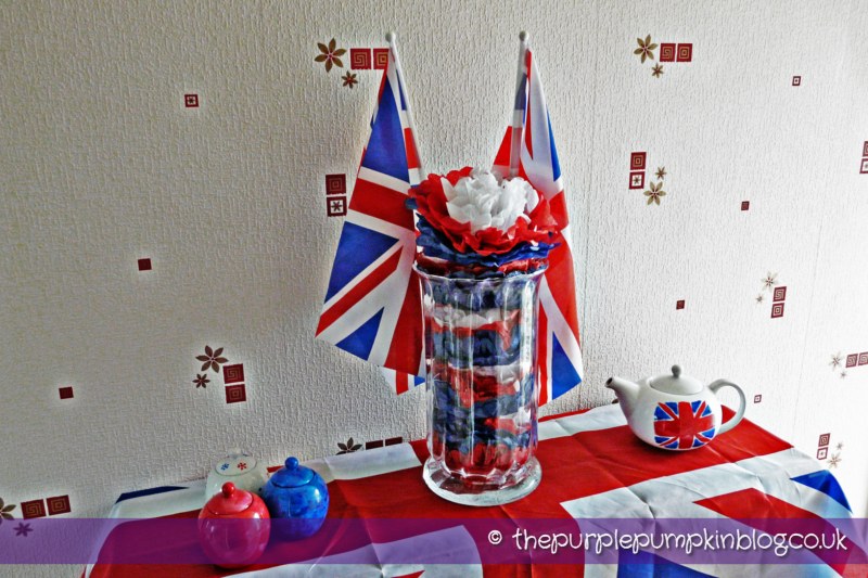Having already celebrated the Diamond Jubilee this year, I had lots of Union Jack flags and other decorations that I could use to support Team GB, and decorated the table in my hallway.