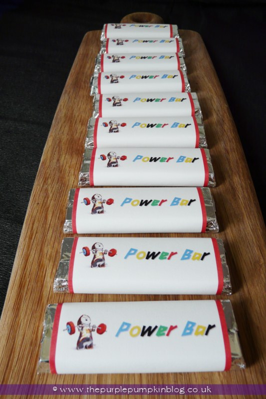 I made some custom chocolate bar wrappers and called them Power Bars :D