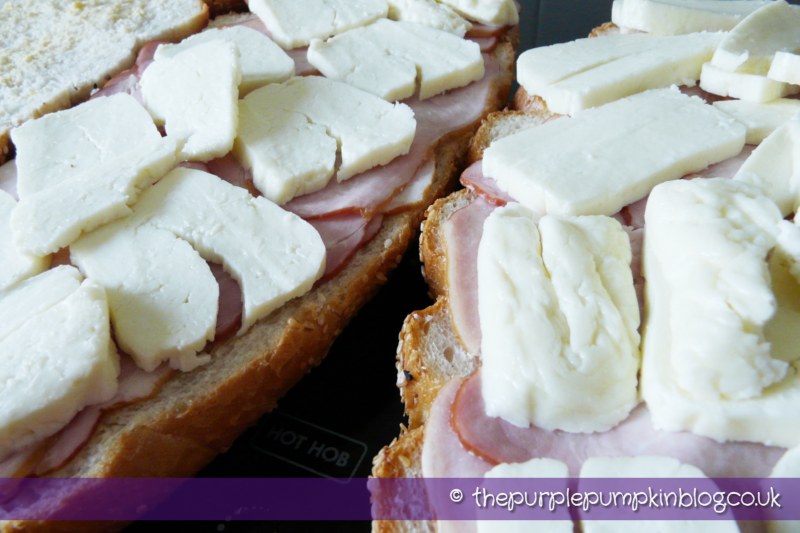 Unfortunately the store had sold out of the rolls that I had wanted to use, so had to buy this tear apart loaf instead. But I got around it by creating one giant sandwich and cutting into pieces.