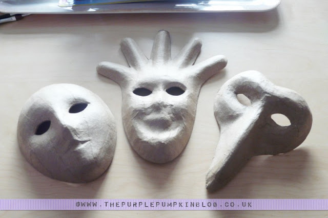 I bought some blank masks from a local craft shop, they were a pound each – bargain! And I stocked up on embellishments in the Mardi Gras colours of purple, green and gold. I bought paint, glitter, sequins, feathers and glitter glue. And we just got to work creating our masks. No rules, just do what you want!