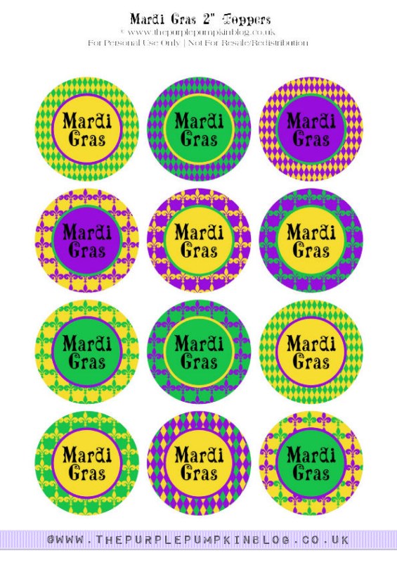 Mardi Gras Cupcake Toppers Free Printable Download