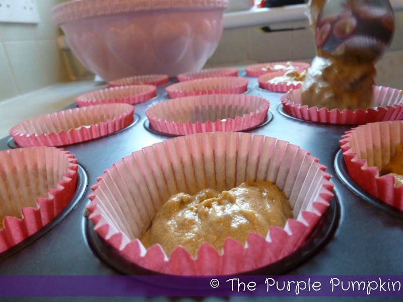 All that’s left to do is to divide the mixture between the twelve cupcake cases. I started with a heaped dessert spoon in each case and kept going until all the mixture was gone!