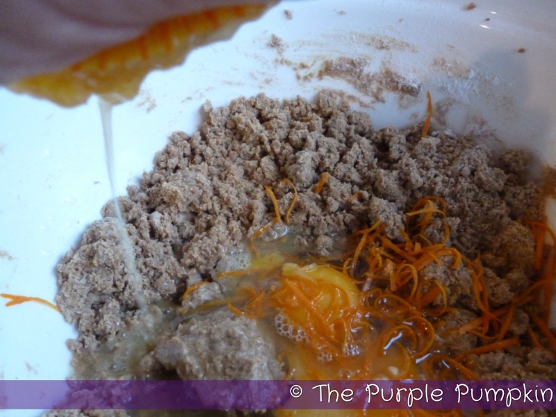 Then zest the orange and squeeze in the orange juice. I’ve managed to lose my citrus squeezer so had to use my hands >_<