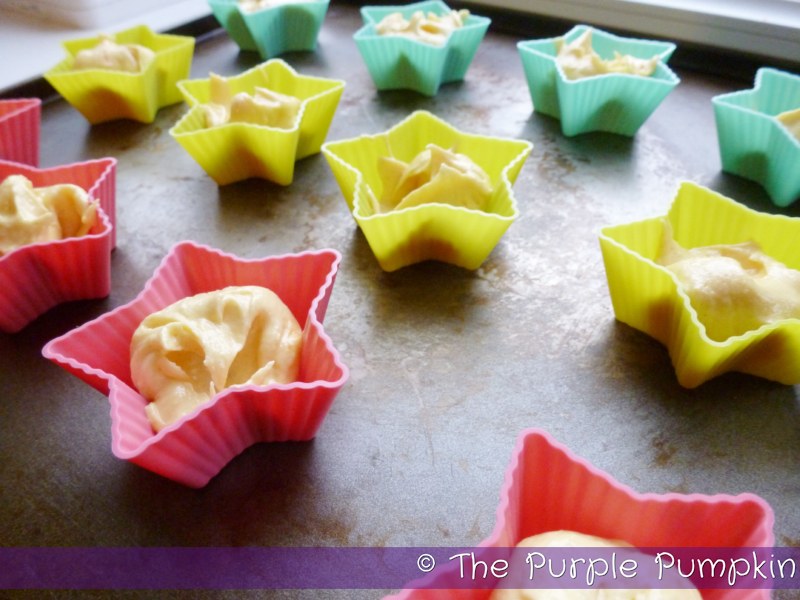 So using the vanilla cupcake batter that I made, I put spoonfuls into some tiny silicone star shaped cake cases that I have.