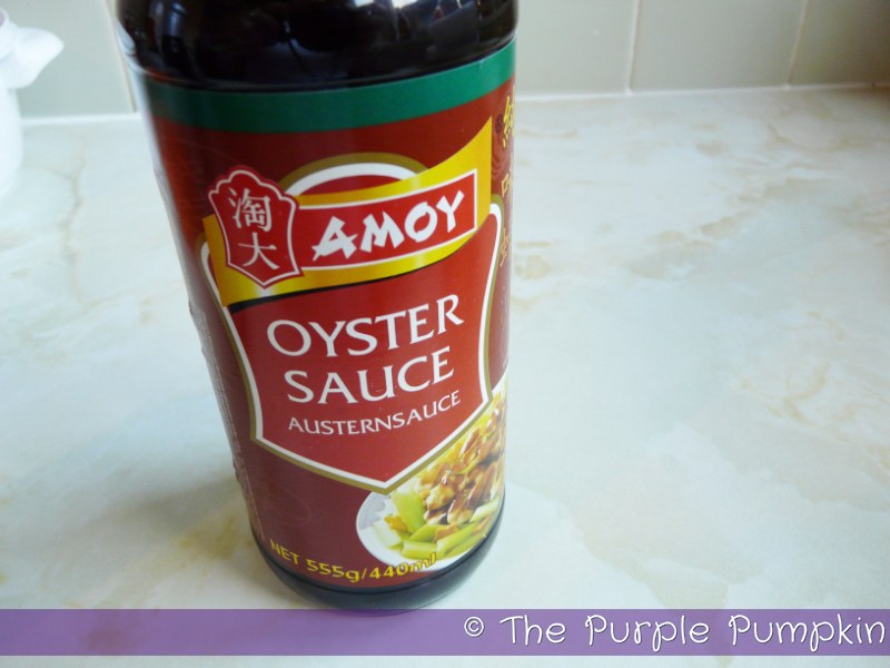 I then made the stir fry sauce using dark soy sauce, Shaoxing rice wine, hoisin sauce, oyster sauce, salt and black pepper. I mixed these all in a container and put to one side till needed.