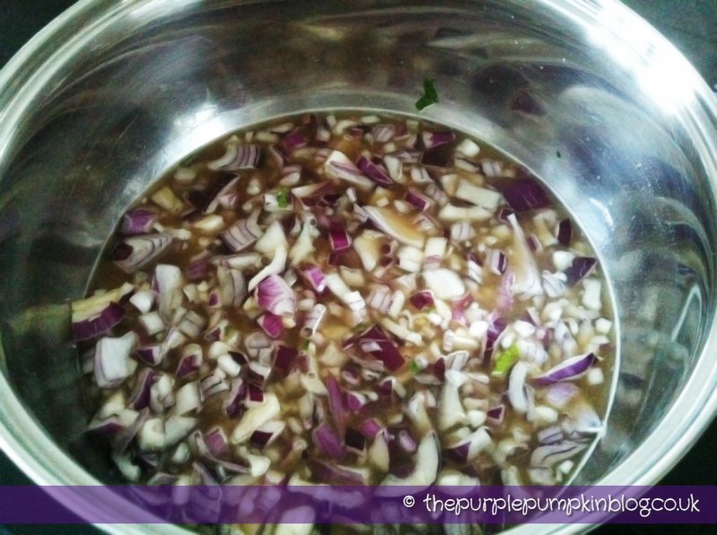 - Make the sauce by cooking the onion and garlic in a pan with the stock over a low heat for 10 minutes