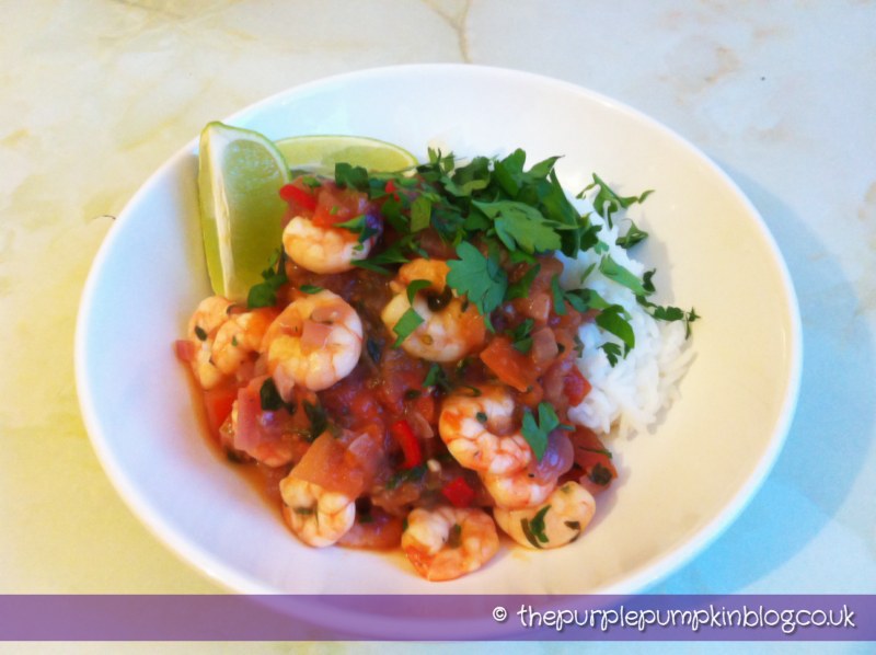Home » COOK » Recipes » Meat & Fish Recipes » Fish & Seafood Recipes » Shrimp Recipes »It’s pouring with rain outside, but here’s a recipe to bring some sunshine into your life! Spicy Creole Prawns…under 400 calories per serving and with a nice chilli kick.