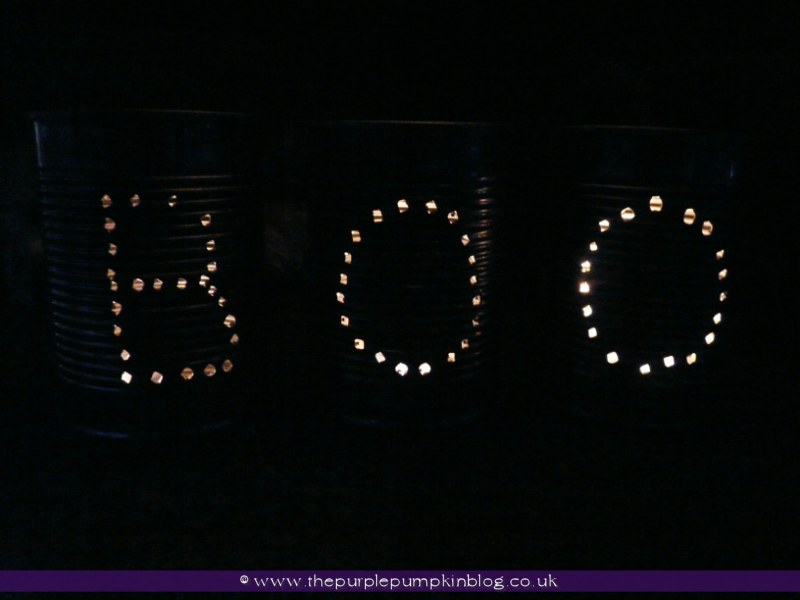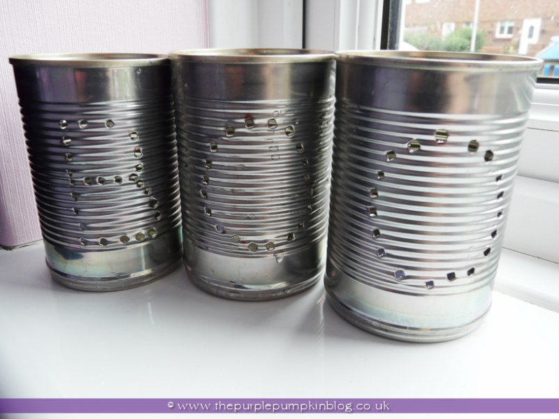 Pop a tea-light inside each can and light them…very effective! I can’t wait to make more :)